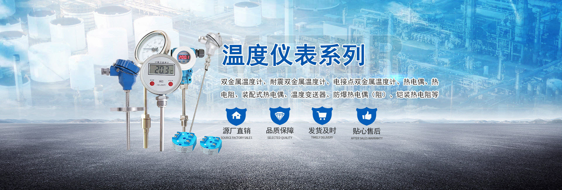 主營產品:壓力表、熱電阻、熱電偶、壓力變送器、溫度變送器、雙金屬溫度計、磁翻板液位計等